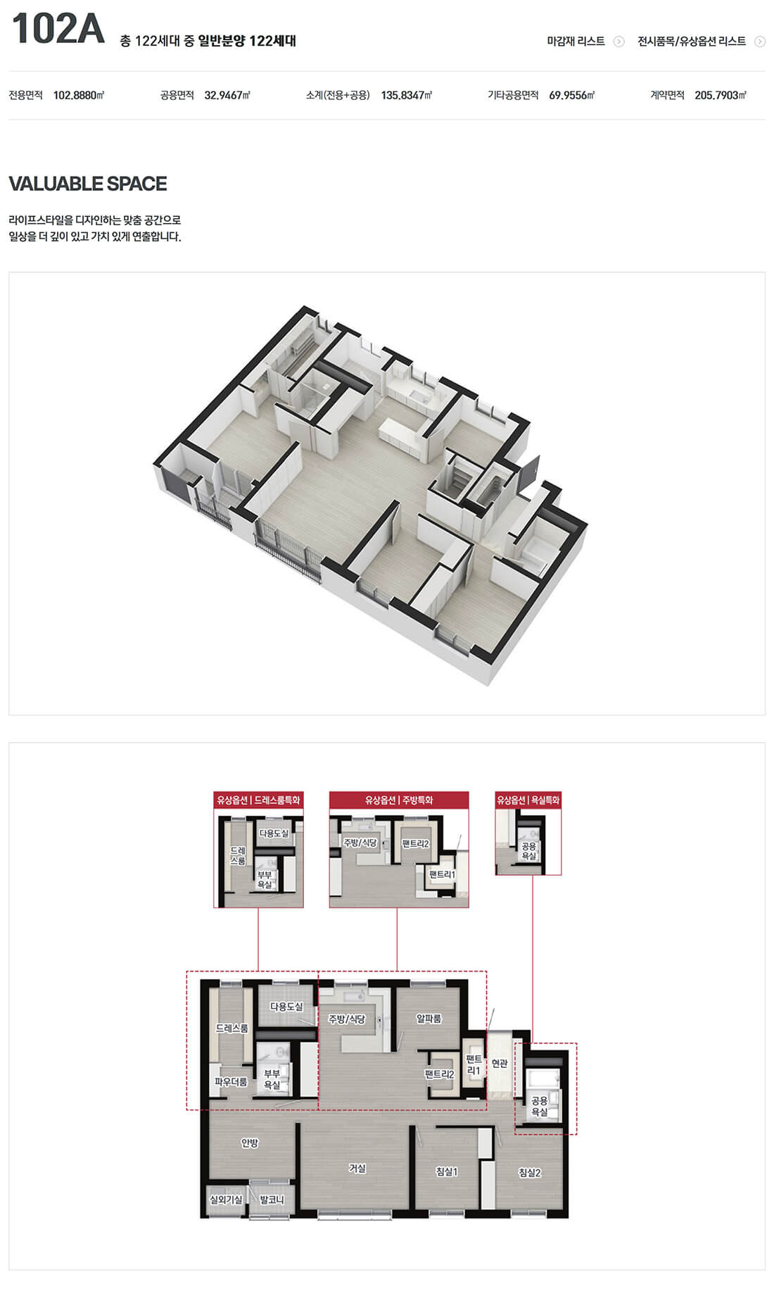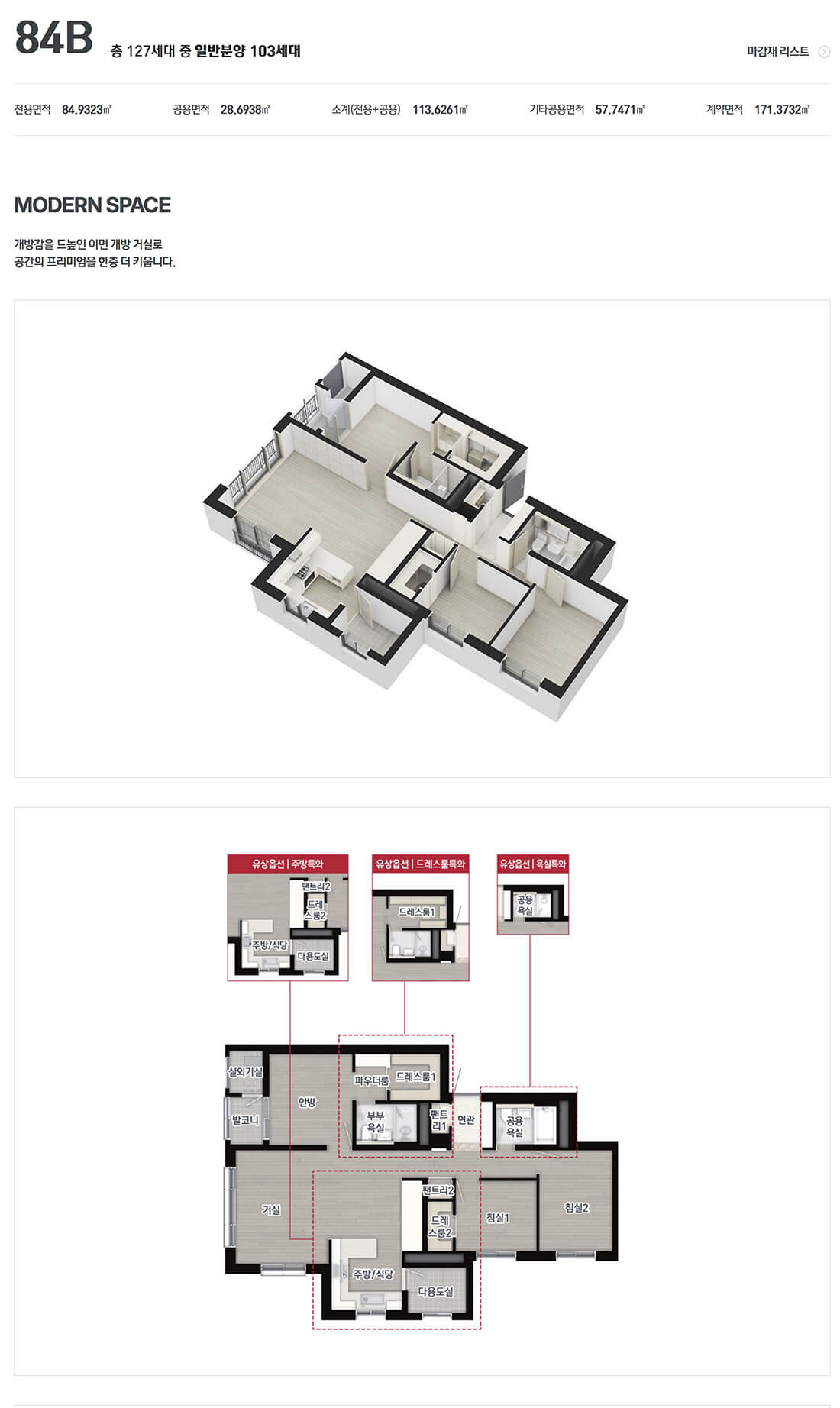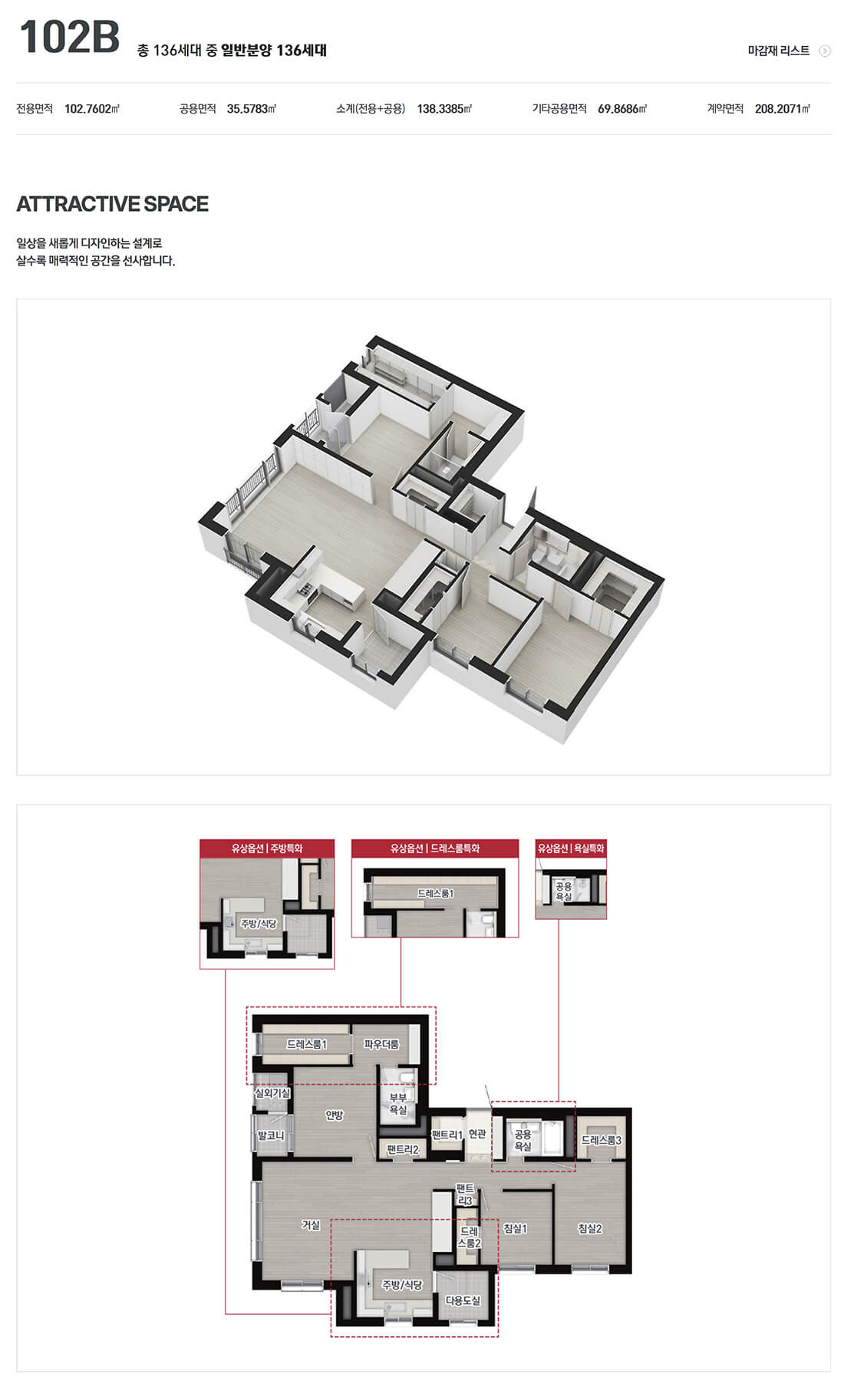 전용면적: 84㎡A·B·C / 102㎡A·B / 197㎡(P.H)