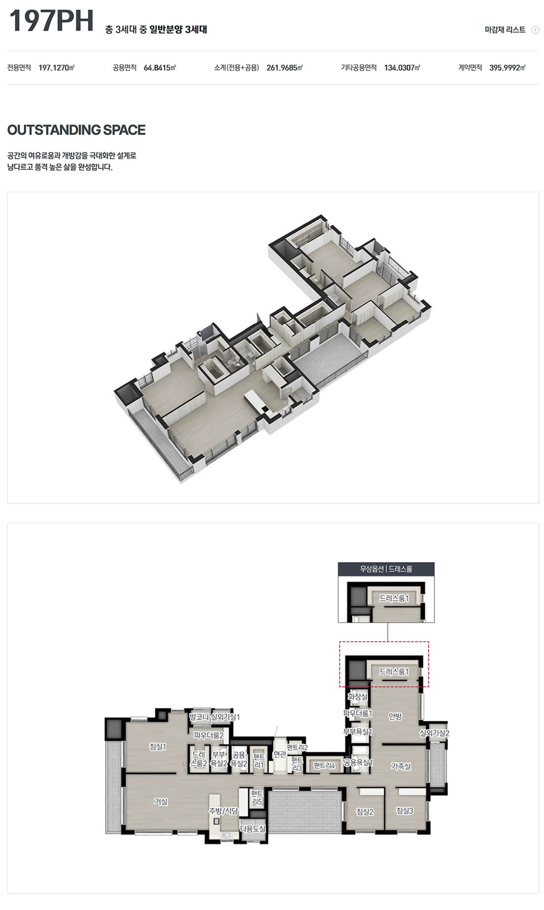 선호도 높은 84㎡부터 197㎡ 펜트하우스까지
